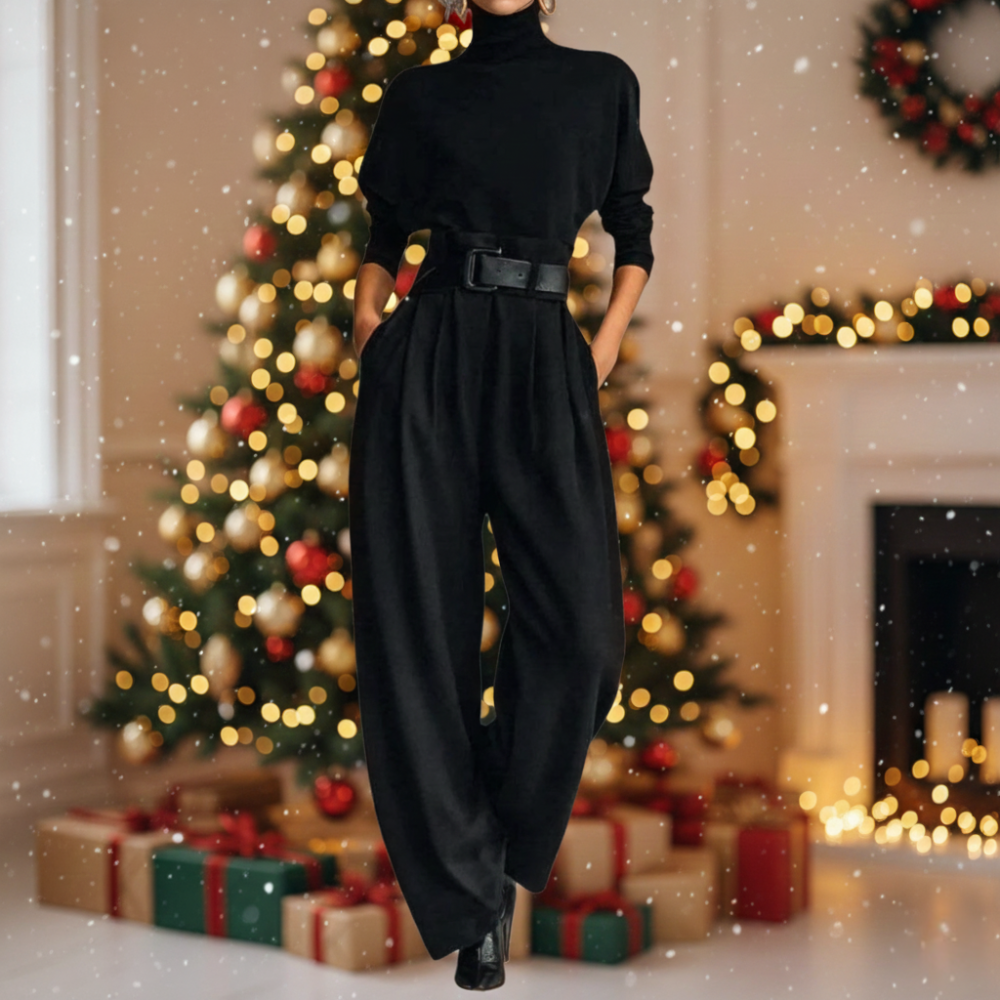 La combinaison Doris redéfinit la sophistication moderne avec sa silhouette élancée et sculptée. Conçue avec un col montant, une taille cintrée et une jambe large, elle allie structure et élégance sans effort. Réalisée dans un tissu de haute qualité, elle convient parfaitement à l’élégance professionnelle comme au charme d’une soirée.